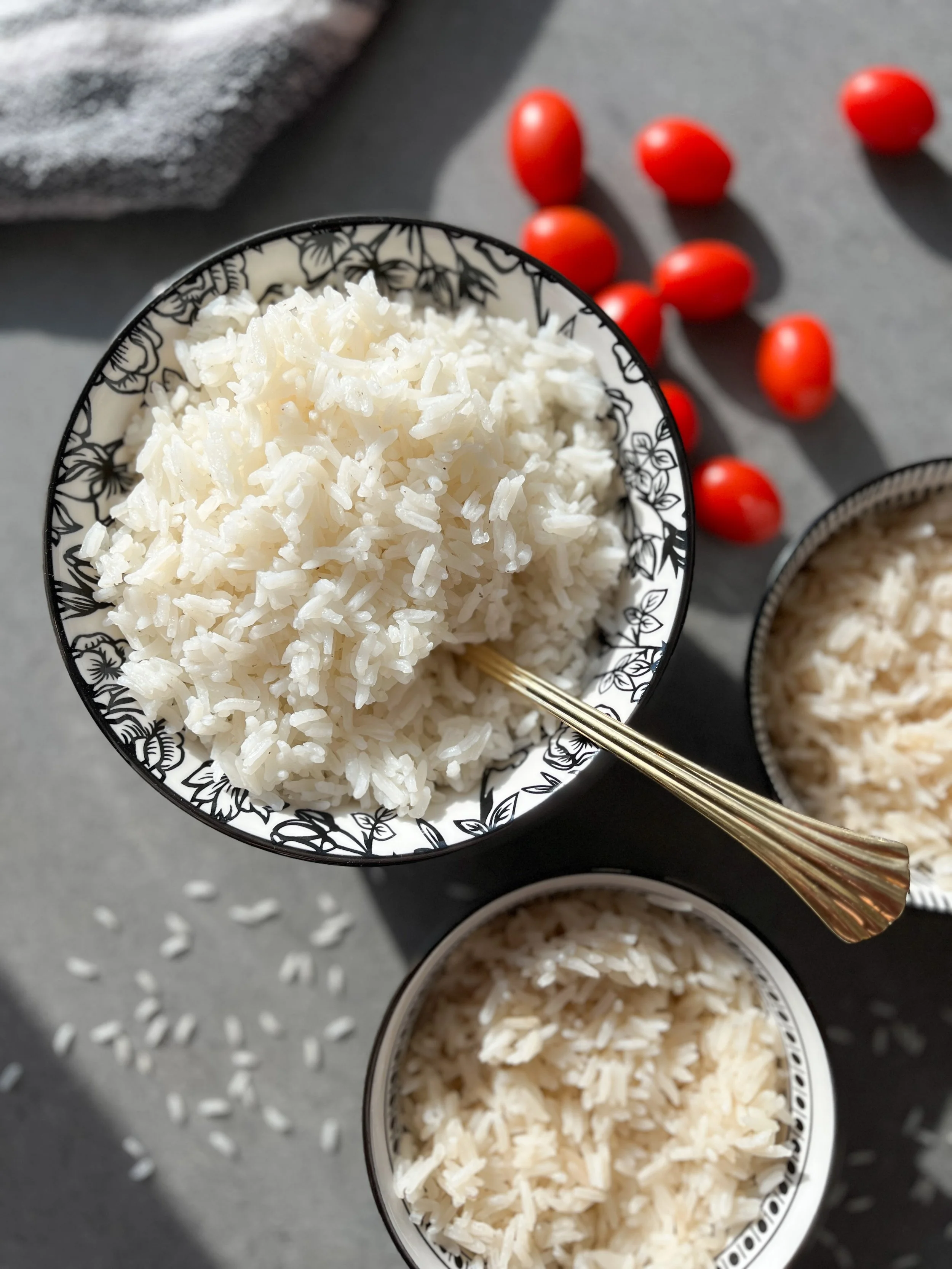 White rice and white potatoes that have been cooked & cooled (reheated or not) become something called ‘resistant starch’. Resistant starch feeds our good gut bugs and is less likely to cause a blood sugar spike, win-win!