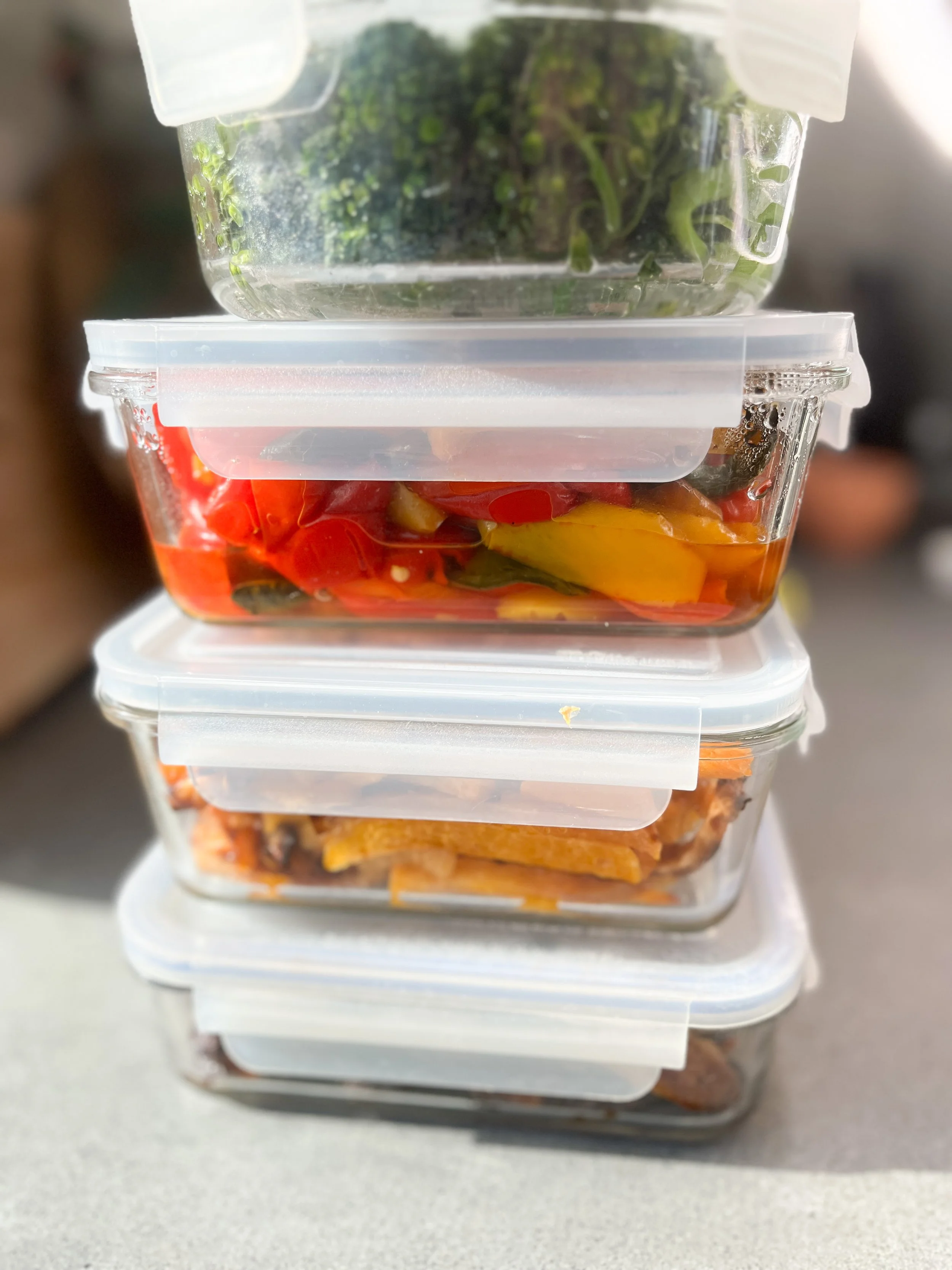 Meal prep containers. I like to use clear glass with airtight lids like these ones so I can easily see what’s in my fridge.