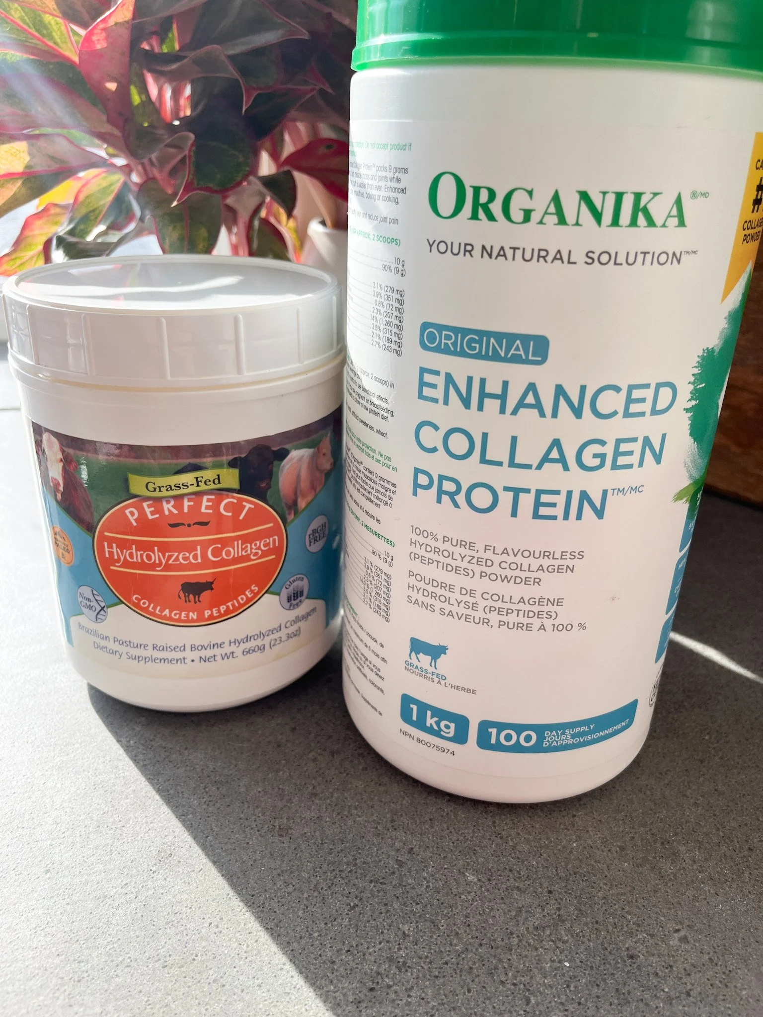 While collagen has many benefits for our health, stimulating muscle growth is not one of them. For this reason, I recommend adding collagen in addition to your daily target. Collagen is not a complete protein but it does have 3 important non-essential amino acids that are excellent for improving joint, gut, hair, skin and nail health. Read more about collagen here.