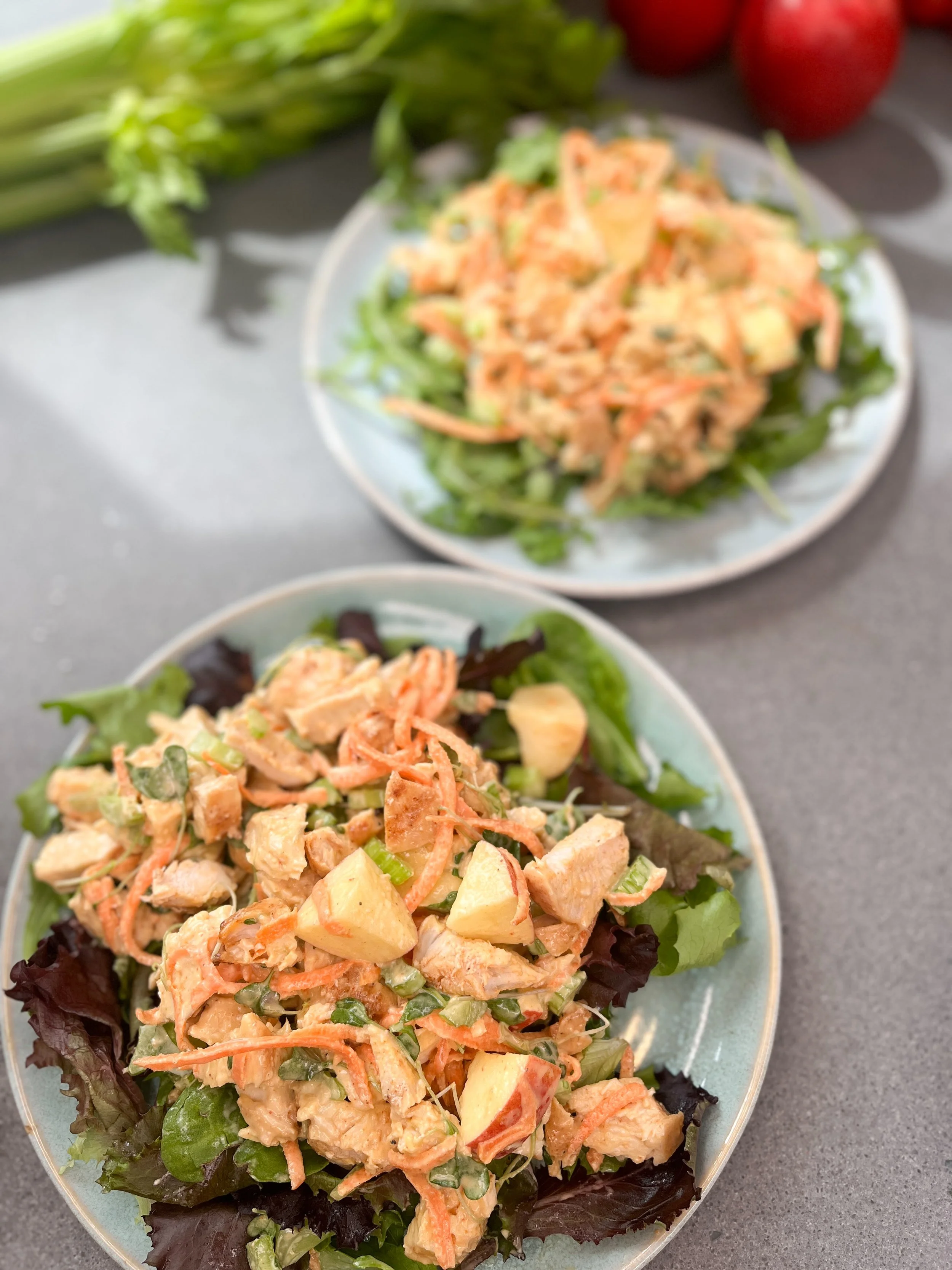Do you grab a bagel, muffin or have cereal because it’s a convenient breakfast? Make your life easier by having this high-protein chicken salad instead!