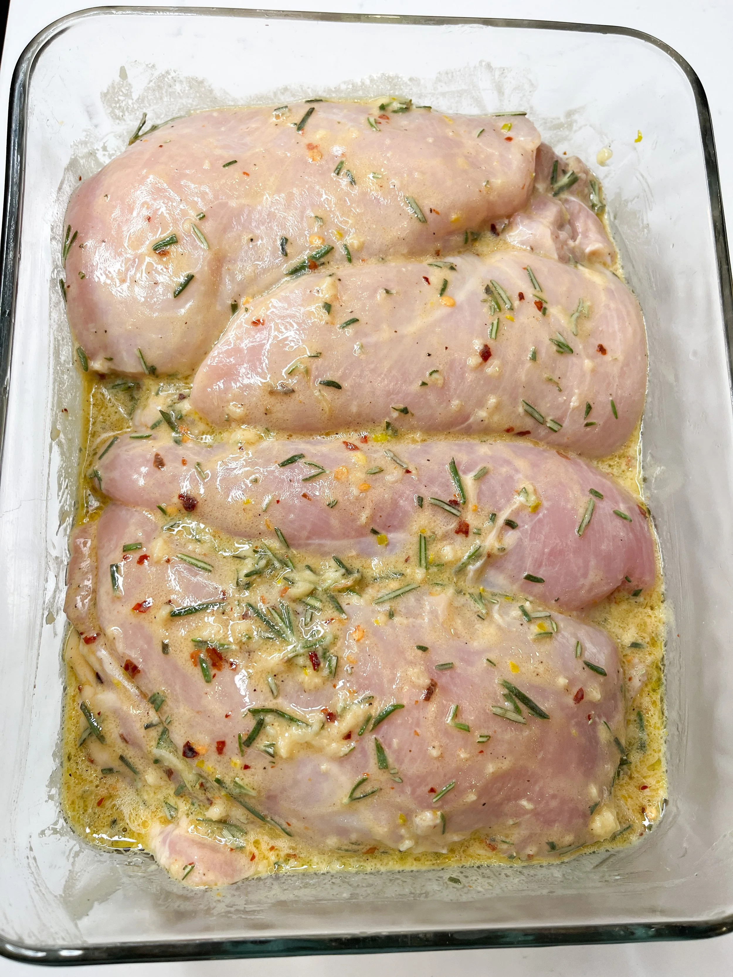 Combine the oil, rosemary, garlic, Dijon, lemon, salt & spices in the bag or a small bowl.