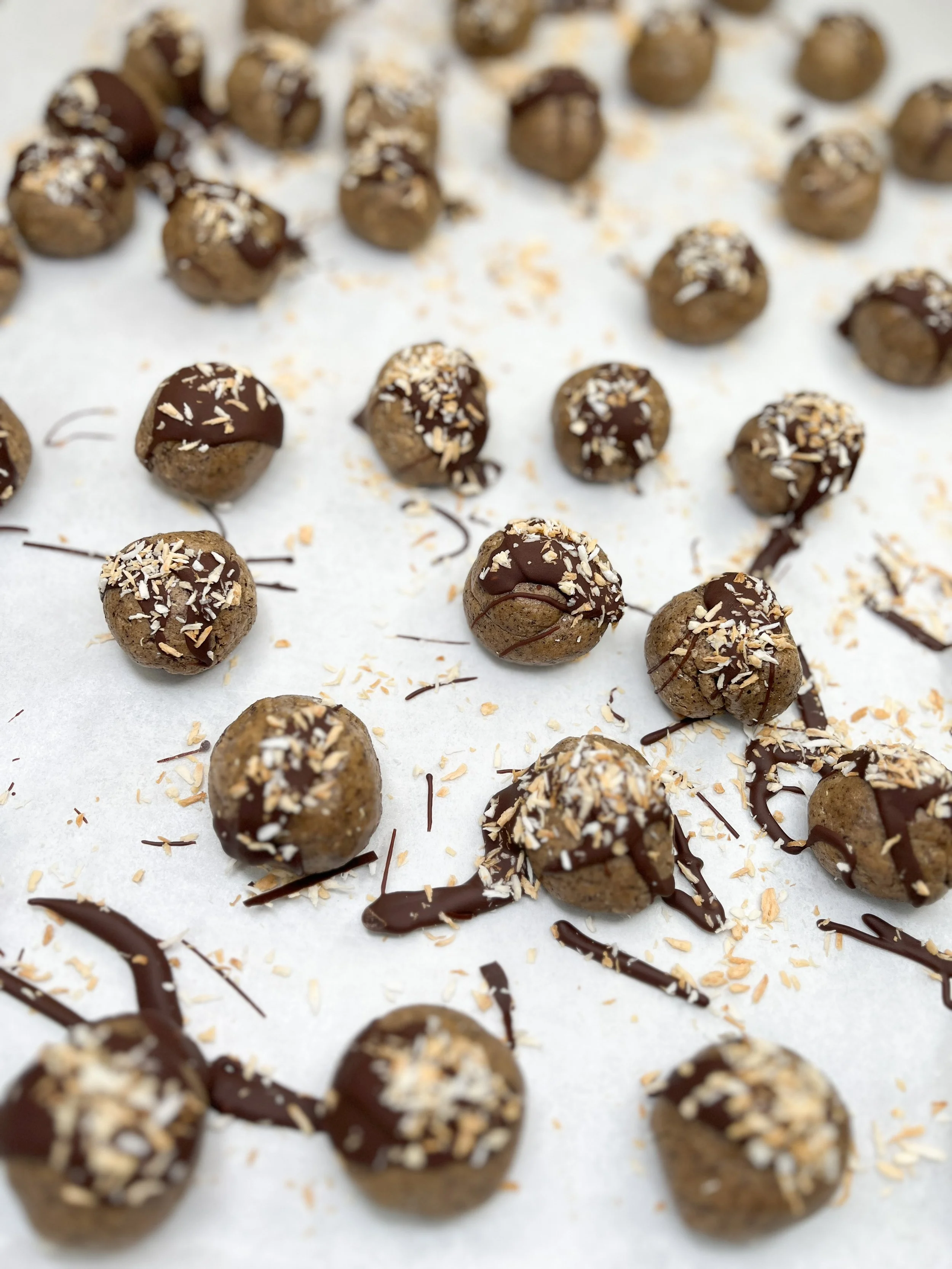 Roll into bite size balls using your hands & place on a cookie sheet lined with parchment paper.