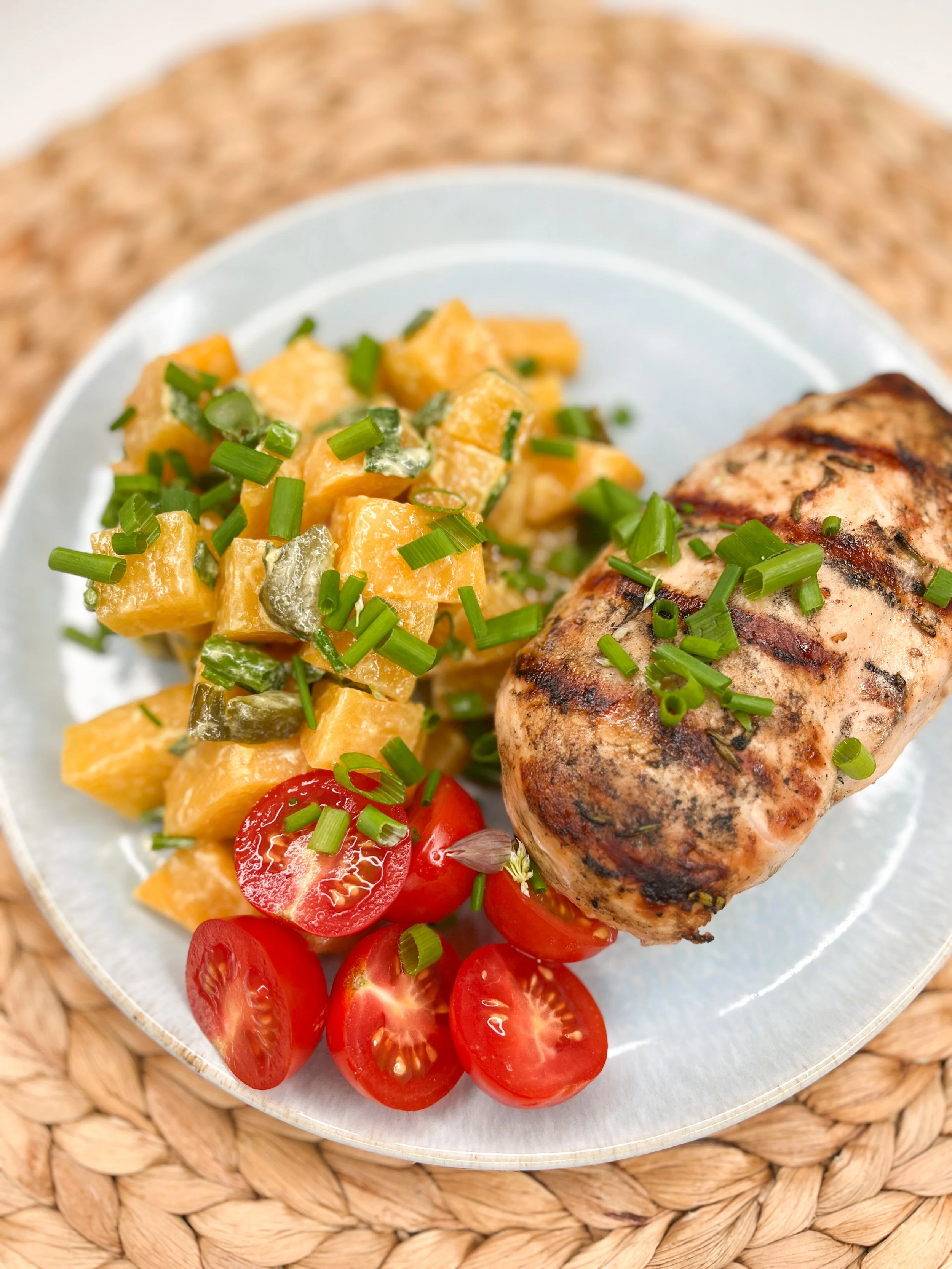 Change it Up! - Swap the chives for dill & the apple cider vinegar for fresh lemon juice.