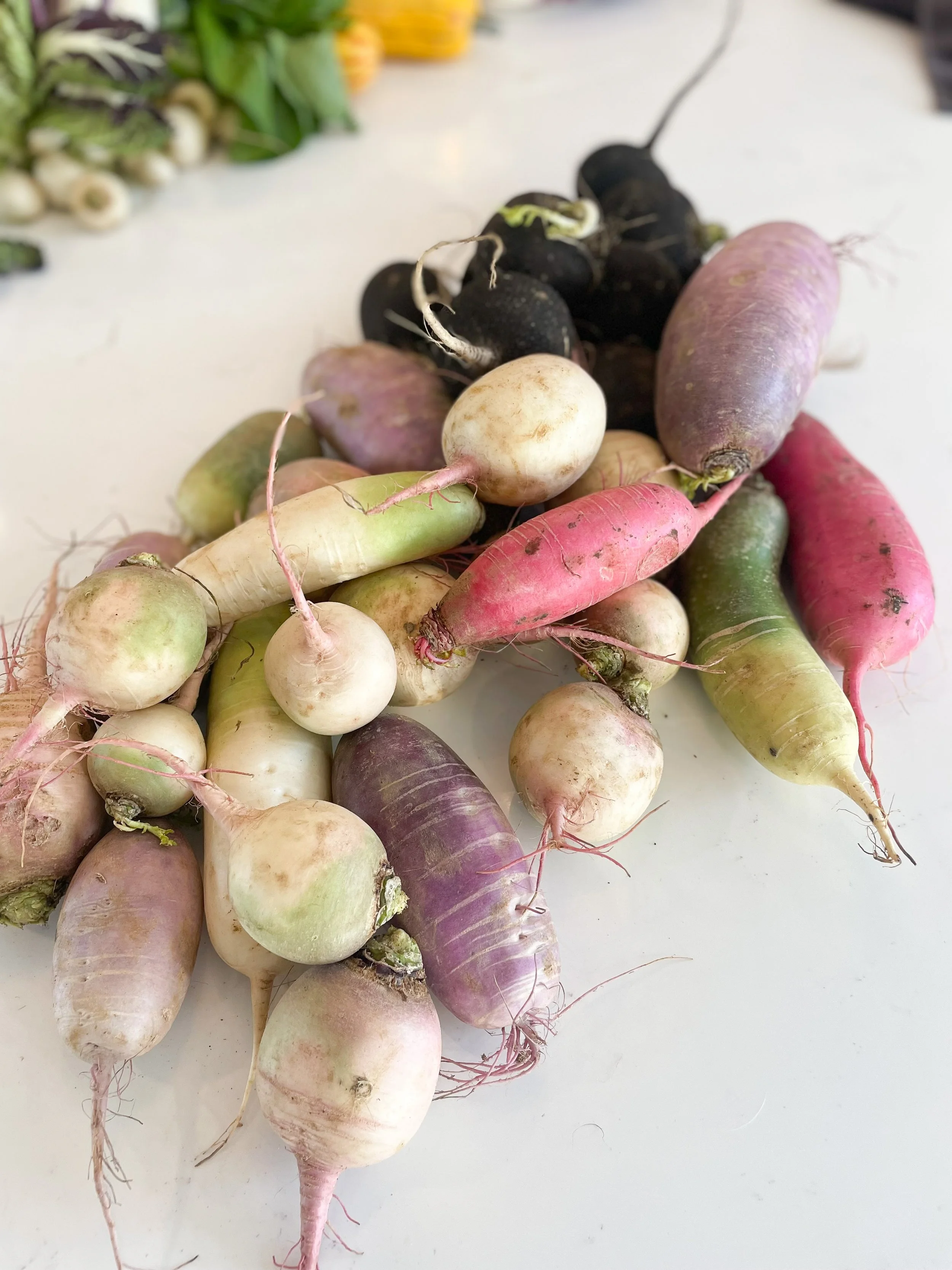 You can roast red radish, but my favourite varieties are daikon, watermelon & black radish. If you can’t find them at your local grocery store, check out your farmer’s market!