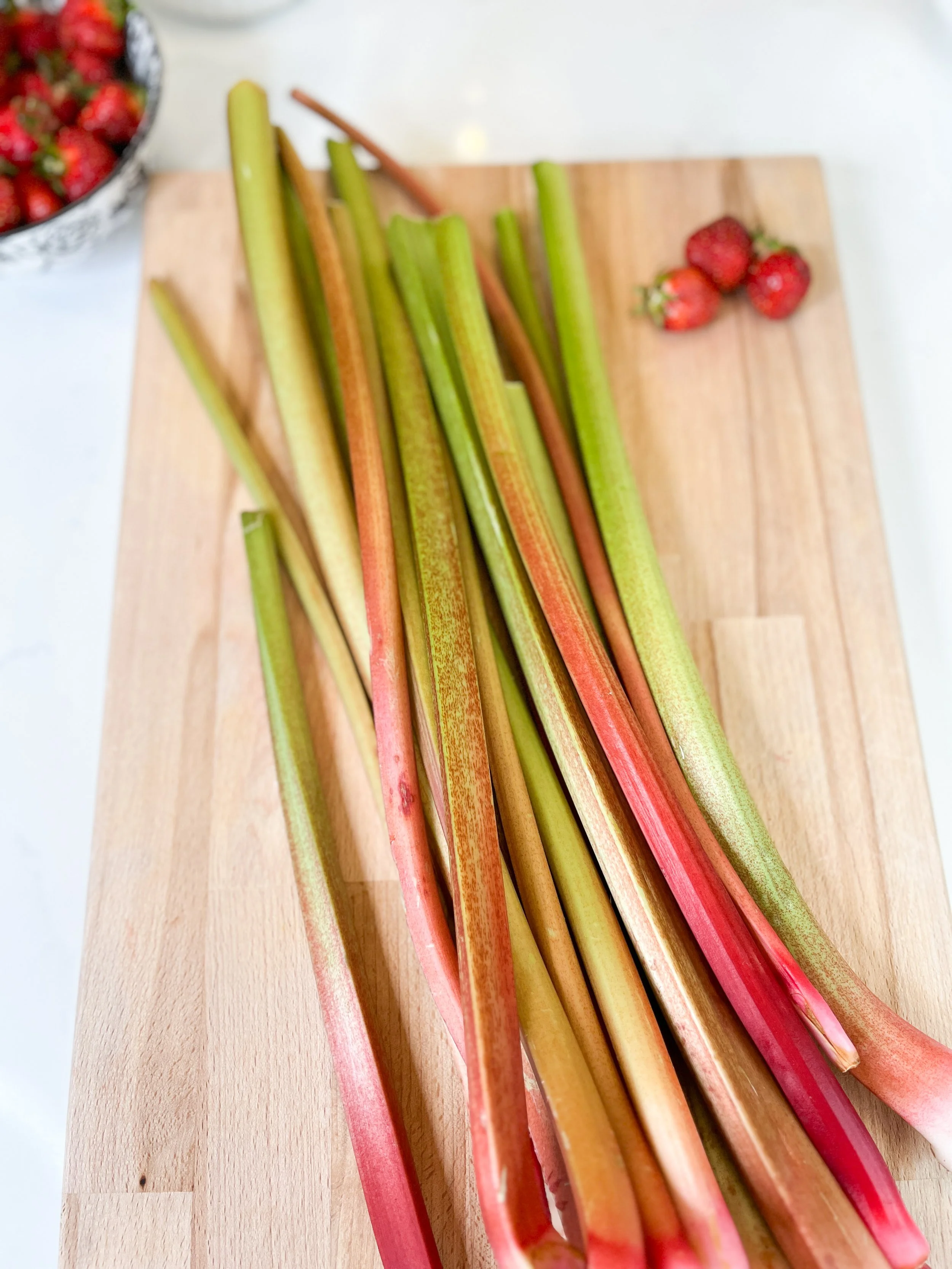 Rhubarb is high in fiber, low in calories and its tasty tang complements the sweetness of strawberries. This is the perfect way to use up that rhubarb this spring!